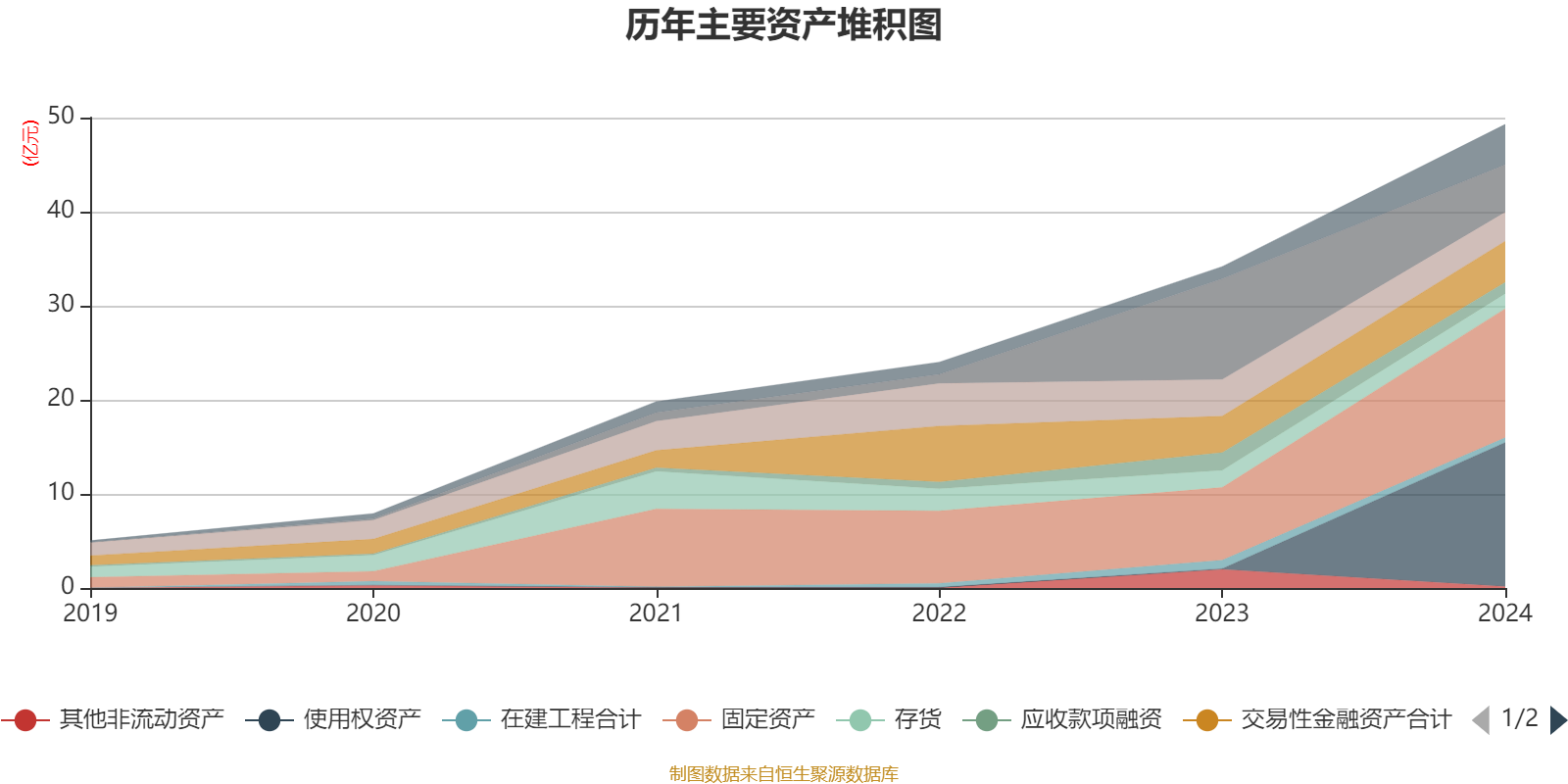资产重大变化方面,截至2024年末,公司使用权资产较上年末增加19657.73%,占公司总资产比重上升30.83个百分点;货币资金较上年末减少52.78%,占公司总资产比重下降21.03个百分点;其他非流动资产较上年末减少91.68%,占公司总资产比重下降5.47个百分点;固定资产较上年末增加77.5%,占公司总资产比重上升5.21个百分点。