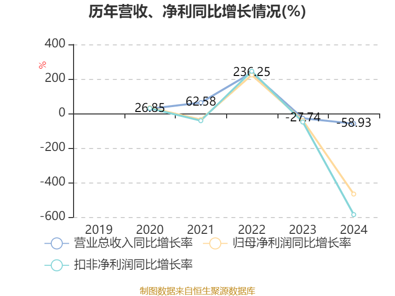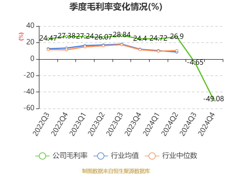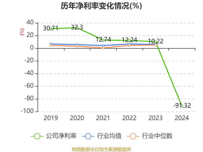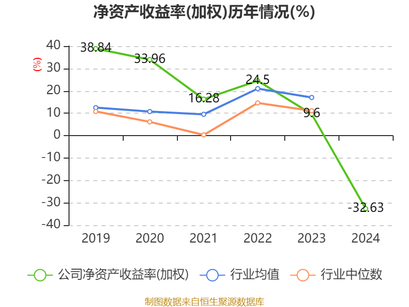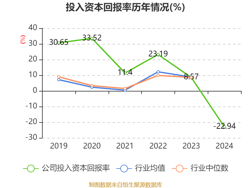 数据显示,2024年公司加权平均净资产收益率为-32.63%,较上年同期下降42.23个百分点。公司2024年投入资本回报率为-22.94%,较上年同期下降31.51个百分点。