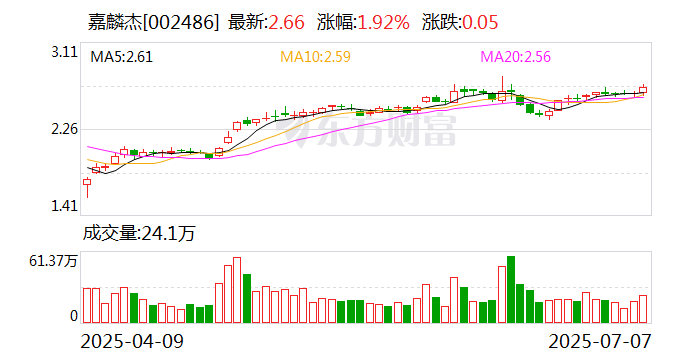 嘉麟杰7月7日晚间发布公告称,截至本公告披露日,公司累计通过股份回购专用证券账户以集中竞价方式回购公司股份7,716,900股,占公司当前总股本的0.93%,最高成交价2.66元/股,最低成交价2.55元/股,成交总金额为20,015,485.00元(不含交易费用)。 公司本次回购股份方案已实施完成,实际回购时间区间为2024年12月23日至2025年7月2日。