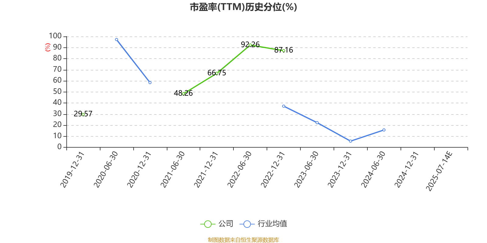 以本次披露业绩预告均值计算,公司近年市盈率(TTM)图如下所示: