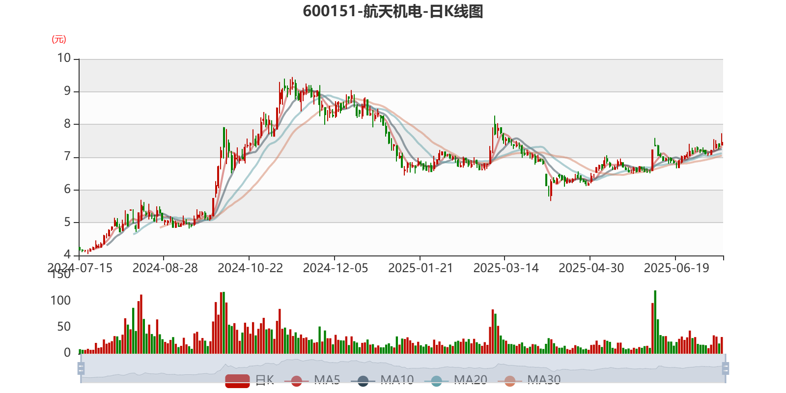 中证智能财讯航天机电(600151)7月14日晚间披露业绩预告,预计2025年上半年归母净利润亏损1.85亿元至2.65亿元,上年同期亏损3286.75万元;扣非净利润亏损2.05亿元至2.85亿元,上年同期亏损8348.35万元。以最新收盘价计算,市净率(LF)约2.2倍,市销率(TTM)约2.19倍。