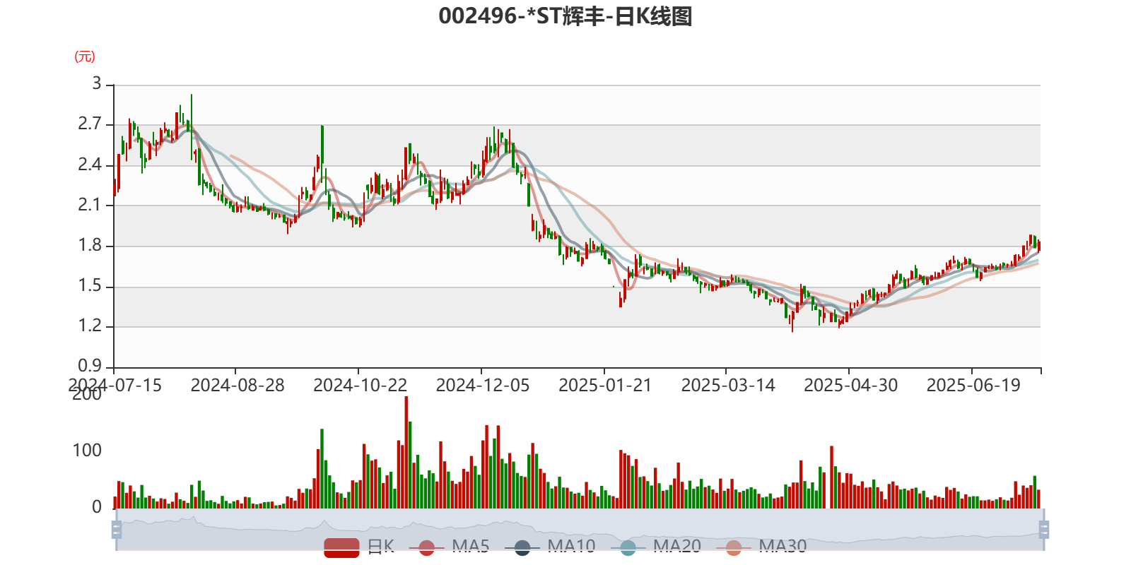 中证智能财讯*ST辉丰(002496)7月14日晚间披露业绩预告,预计2025年上半年归母净利润1000万元至1500万元,同比下降56.85%-71.23%;扣非净利润亏损700万元至900万元,上年同期亏损5443.32万元。以最新收盘价计算,市净率(LF)约2.05倍,市销率(TTM)约9.3倍。