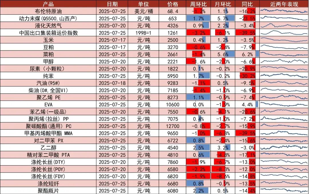 本周基础化工、新材料均下跌。本周(20250728-20250801)沪深300涨跌幅为-1.75%,上证指数涨跌幅为-0.94%,创业板指涨跌幅为-0.74%。涨幅前三行业分别是医药生物(2.95%)、通信(2.54%)、传媒(1.13%)。