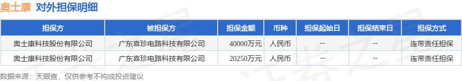 奥士康8月18日披露2笔对外担保,被担保方为广东喜珍电路科技有限公司。对外担保明细如下表: