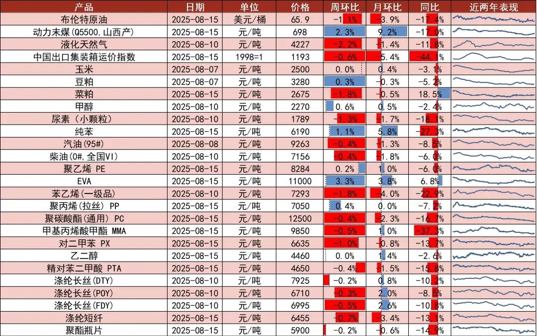 塑料及纤维:碳纤维(83750元/吨,不变)、涤纶工业丝(8650元/吨,-2.81%)、涤纶帘子布6月出口均价为(16453元/吨,-1.12%)、芳纶(8.73万元/吨,-1.21%)、氨纶(27000元/吨,不变)、PA66(15500元/吨,不变)、癸二酸6月出口均价为28295元/吨,较上月下降0.33%。