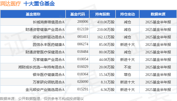 持有润达医疗最多的基金为长城消费增值混合A,目前规模为4.21亿元,最新净值1.252(8月27日),较上一交易日下跌2.67%,近一年上涨45.13%。该基金现任基金经理为龙宇飞。