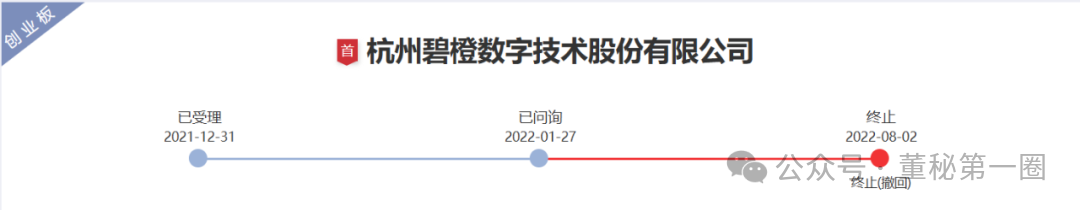 碧橙数字申报创业板IPO于2021年12月31日获得受理,完成一轮审核问询回复,于2022年8月2日被终止审核。