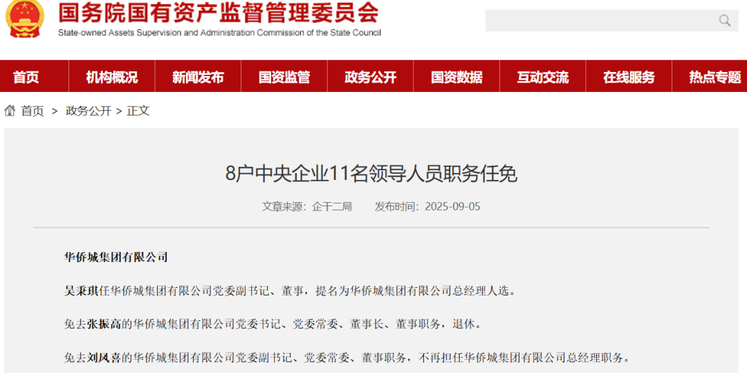 9月5日,国资委官宣了《8户中央企业11名领导人员职务任免》,华侨城的变化,就在首位。