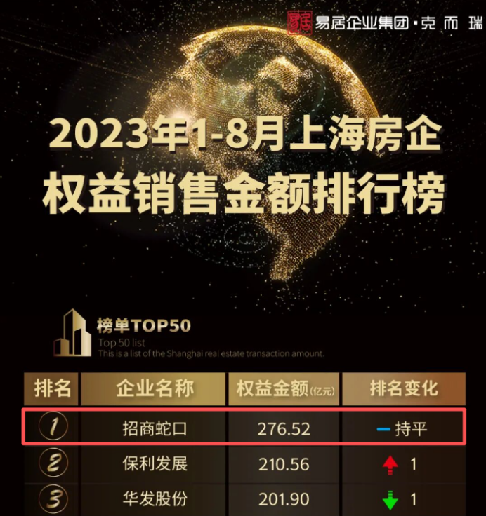 回过头去看,今年前8月,招商蛇口已经是上海权益销售额的TOP1——222.28亿,已经非常接近招商蛇口在上海最巅峰的2023年同期的权益销售额。