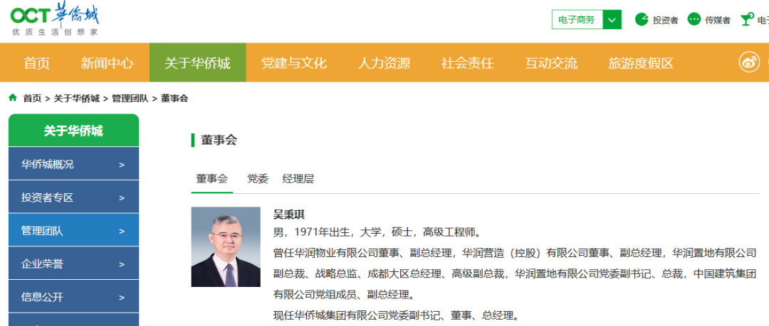 如今,在华侨城集团官网上,吴秉琪的最新身份也已然是:华侨城集团党委副书记、董事、总经理。
