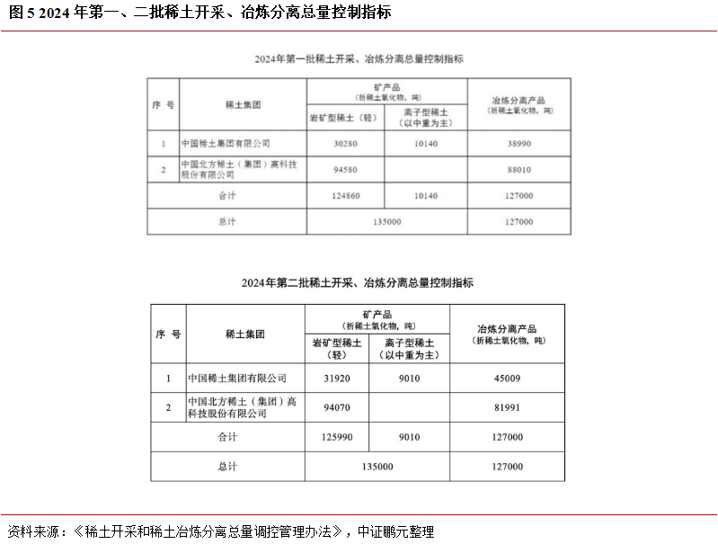 稀土生产配额是稀土行业指导性生产计划的组成部分,国家通过它来引导行业发展并影响稀土价格走势,在调控稀土市场中扮演着重要的角色。这轮稀土价格的上涨固然与出口管制政策直接相关,同时也是2024年以来一系列调控政策综合作用的结果,包括稀土生产配额增速放缓、打击非法开采和走私行为等。2024年6月,国务院出台《稀土管理条例》,首次以行政法规形式规范稀土开采、冶炼分离等生产经营秩序,有序开发利用稀土资源;2025年2月,工信部发布了《稀土开采和稀土冶炼分离总量调控管理办法(暂行)(公开征求意见稿)》和《稀土产品信息追溯管理办法(暂行)(公开征求意见稿)》;4月商务部和海关总署发布公告,对钐、钆、铽、镝、镥、钪、钇等七种中重稀土实施出口管制。2025年8月22日,工业和信息化部、国家发展改革委、自然资源部联合发布《稀土开采和稀土冶炼分离总量调控管理暂行办法》(简称“《暂行办法》”)。《暂行办法》的实施,标志着国家对稀土这一战略资源的管理进入了新阶段。与工信部2月发布的《稀土开采和稀土冶炼分离总量调控管理办法(暂行)(公开征求意见稿)》(简称“《征求意见稿》”)相比,《暂行办法》通过简化管理流程、强化地方监管、明确处罚标准,提升了政策执行效率,同时弱化稀土集团的中间管理角色,直接加强对稀土企业的管控。核心变动体现精准监管的方向,或引发市场对供给侧收紧的预期。