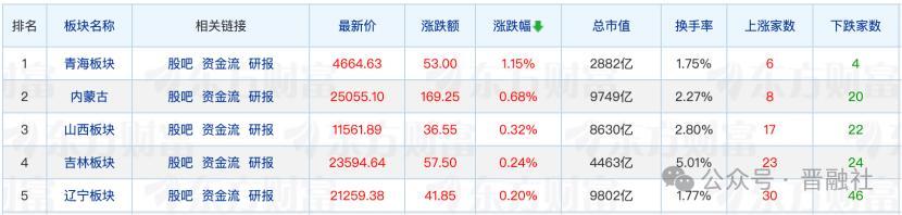 从地域板块来看,青海、内蒙古、山西、吉林、辽宁涨幅靠前。其中山西板块9月15日涨幅为36.55%,排名第三,17家上市公司股价上涨。
