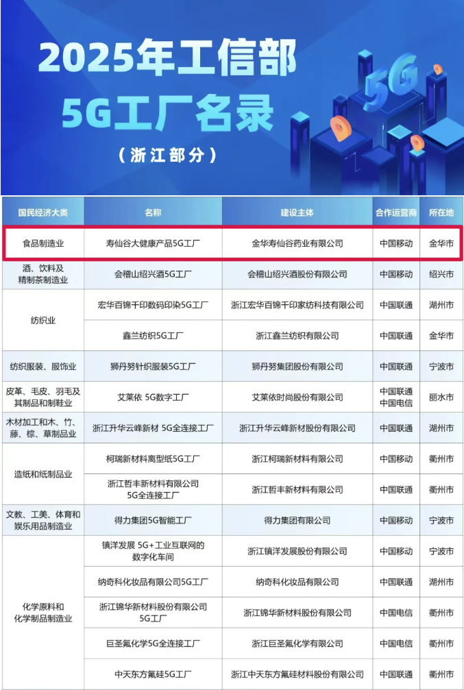 近日,国家工业和信息化部公布《2025年工信部5g工厂名录》,金华寿仙谷药业有限公司打造的“寿仙谷大健康产品5g工厂”成功入选,该项目依托5g技术深度融合工业互联网、人工智能、数字孪生等新一代信息技术,实现了中医药全产业链数字化升级,为传统中医药行业转型升级树立了标杆。