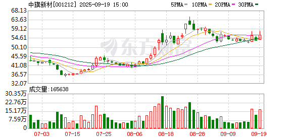 中旗新材9月19日大宗交易平台出现一笔成交,成交量187.20万股,成交金额8942.54万元,大宗交易成交价为47.77元,相对今日收盘价折价14.97%。该笔交易的买方营业部为机构专用,卖方营业部为中信证券华南股份有限公司佛山分公司。