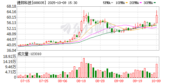 证券时报·数据宝统计显示,德邦科技今日收盘价为61.74元,上涨11.95%,日换手率为8.67%,成交额为7.45亿元,全天主力资金净流出2884.33万元,近5日该股累计上涨8.53%,近5日资金合计净流出7893.94万元。