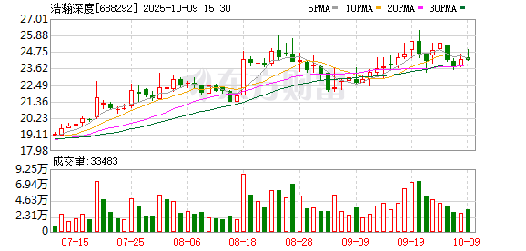 证券时报·数据宝统计显示,浩瀚深度今日收盘价为24.19元,下跌0.25%,日换手率为3.32%,成交额为8212.08万元,全天主力资金净流出102.91万元,近5日该股累计下跌2.81%,近5日资金合计净流出1354.77万元。