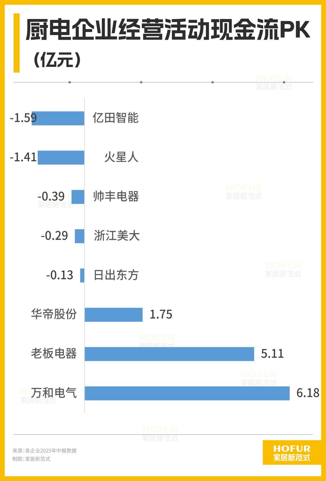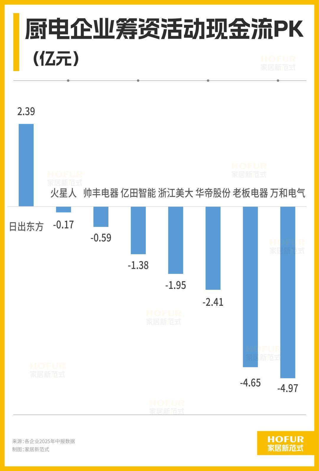 家居新范发现,在存量竞争时代,现金流才是一个企业最大的底气。从经营活动现金流来看,巨头忙着“存粮”,新势力正在“失血”,老板电器、华帝股份现金流充足,造血能力强劲,存够了“粮食”抵御行业寒冬;反观集成灶品牌和日出东方,经营活动现金流为负,处于“失血”状态,过去的家底光拿来交学费了。