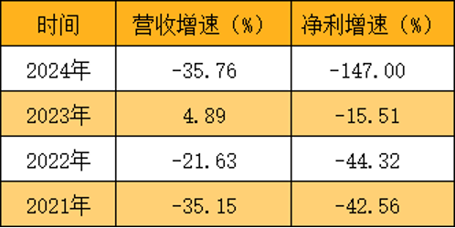 股价崩盘的背后,是基本面的彻底恶化。康泰医学上市第二年便“变脸”:2021年营收下滑35.15%,净利润下降42.56%;2022年继续双降;2023年营收仅微增4.89%,净利继续下降15.51%;2024年营收再度暴跌35.76%,净利巨亏7790.26万元。