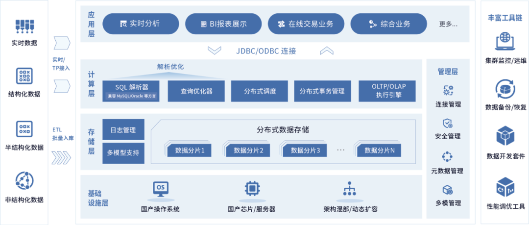 海光7000系列处理器作为国产CPU的主流选择,具备超线程、高主频特性,内置国密算法加速模块,为数据库提供高性能、高安全的算力底座。星环科技作为全球首家通过TPC-DS基准测试及官方审计的公司[1],其分布式数据库产品ArgoDB也通过了该基准测试,ArgoDB融合高并发事务处理和实时分析能力,可应对横向灵活扩展以满足业务的弹性变化需求,具备高扩展、高性能、高安全、高可用、高兼容、易运维等特性,已助力政府、金融、医疗、交通等多个行业用户实现自主创新升级。