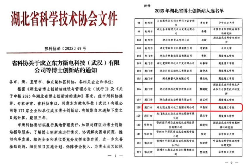 近日,湖北省科学技术协会正式公布了第一批省级博士创新站名单,湖北凯龙楚兴化工集团有限公司申报的博士创新站成功入选,标志着该站正式获批设立。这是公司科技创新平台建设的一项重要突破。