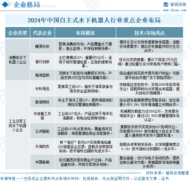 目前,我国中国自主式水下机器人市场格局呈现消费级与工业级双轨并进、差异化竞争的鲜明特征。在消费级领域,以鳍源科技、潜行创新、瀚海蓝帆为代表的头部企业精准捕捉个人用户及小型团队的多元化需求,通过轻量化设计、模块化组件和智能化交互技术,打造出兼具便携性与高性价比的水下设备,广泛应用于水质监测、水下摄影、渔业观测等场景,推动该细分市场以年均超50%的增速持续扩张。而在工业级赛道,云洲智能、中信重工开诚、中船应急等企业则聚焦深海资源开发、海洋工程维护等高端领域,依托自主导航、集群协同、智能避障等核心技术,构建起覆盖深海矿产勘探、海底管道巡检、海洋石油平台运维的全场景解决方案,其中云洲智能凭借其技术优势在海洋石油勘探领域占据超60%的市场份额,引领行业向专业化、智能化方向深度演进。