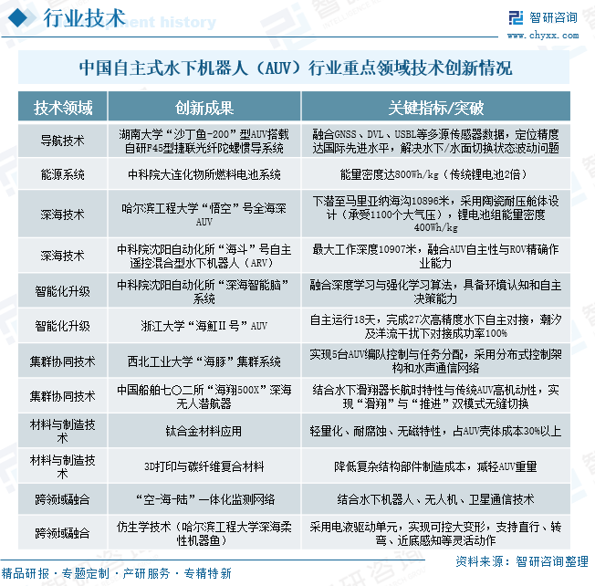 随着全球陆地资源日益枯竭,深海多金属结核、可燃冰等战略矿产资源成为各国争夺焦点,中国作为最大资源消费国之一,对深海采矿技术研发与应用需求迫切,自主式水下机器人(AUV)凭借大范围、长续航优势成为深海矿产勘探核心装备;在海洋油气开发领域,面对作业水深突破带来的成本与安全挑战,AUV以经济高效特性替代传统有人潜器,中海油服2025年部署3000米级AUV完成深海地质调查,彰显专业工程级装备从无到有的突破及行业对高端深海装备的旺盛需求;同时,海洋环保监测需求崛起为AUV开辟民用市场,其搭载多参数传感器可追踪微塑料污染、支撑碳汇交易;军事领域则对隐蔽性、集群协同提出更高要求,持续推动AUV向高精度导航、智能决策等前沿技术迭代升级。
