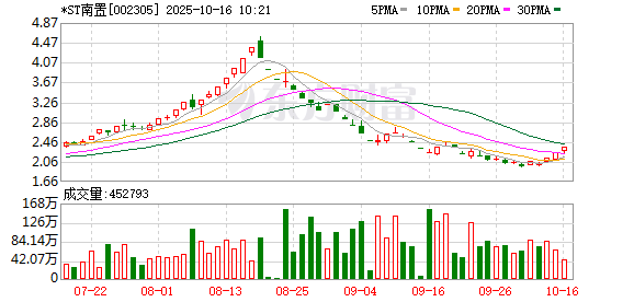 *ST南置再度涨停,5个交易日内录得4个涨停,累计涨幅为19.29%,累计换手率为20.27%。截至9:33,该股今日成交量3881.97万股,成交金额8977.46万元,换手率2.24%。最新A股总市值达40.75亿元,A股流通市值40.75亿元。