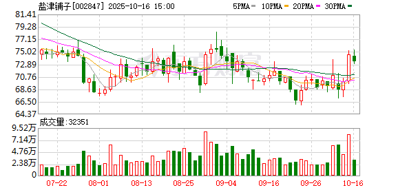 证券时报·数据宝统计显示,盐津铺子今日收盘价为73.41元,下跌1.45%,日换手率为1.32%,成交额为2.39亿元,全天主力资金净流出134.51万元,近5日该股累计上涨6.24%,近5日资金合计净流入875.16万元。