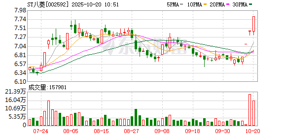 ST八菱盘中涨停,已连收3个涨停板,截至10:13,该股报7.81元,换手率4.52%,成交量1188.76万股,成交金额8918.30万元,涨停板封单金额为224.77万元。连续涨停期间,该股累计上涨15.70%,累计换手率为12.46%。最新A股总市值达22.13亿元,A股流通市值20.52亿元。
