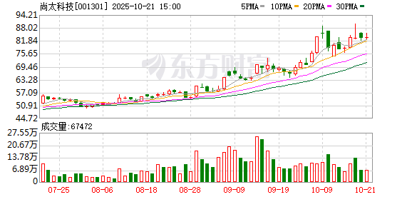证券时报·数据宝统计,截至发稿,尚太科技收盘价为83.61元,上涨0.76%,本期筹码集中以来股价累计上涨6.96%。具体到各交易日,4次上涨,3次下跌。