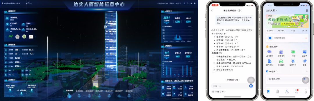 达实智能自主研发的AIoT智能物联网管控平台除了连接与控制设备,还存储数据,支持AI应用。平台已适配95%的建筑机电设备品类,还与AI技术深度融合,拓展AI模型层架构,内嵌智能体(AI Agent),通过物联网(IoT)园区运营实时数据接入大语言模型,基于多维数据构建AI应用工作流。平台目前生态也更加开放,支持第三方厂商从平台调取数据,低代码二次开发。