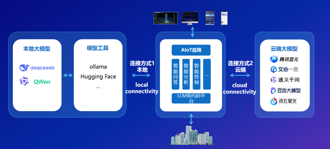 值得一提的是,达实AIoT平台不仅能支持本地大模型接入,保障用户数据安全,也支持云端大模型接入,充分满足用户需求。