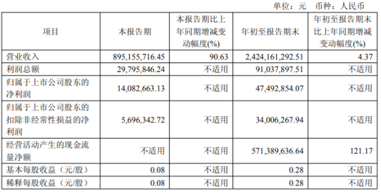 2025年前三季度,公司实现营业收入24.24亿元,同比增长4.37%,归母净利润为4749.29万元,扣非净利润为3400.63万元。