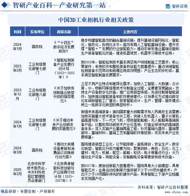 3D工业相机作为智能制造装备的核心感知部件,在推动制造业智能化转型和数字化升级中发挥着不可替代的关键作用。近年来,中国政府将智能装备制造业及其关键零部件产业提升至国家战略高度,通过系统性政策布局加速行业技术创新和产业生态构建。2023年2月,工信部等七部门联合印发的《智能检测装备产业发展行动计划(2023-2025年)》明确提出,到2025年要实现智能检测技术在重点制造领域的工艺适配性突破,显著提升包括3D视觉系统在内的核心零部件自主供给能力,并在示范应用中形成规模化效应。2024年1月,七部门进一步出台《关于推动未来产业创新发展的实施意见》,将高端装备列为重点发展方向,强调要通过实施重大技术装备攻关工程,突破包括精密视觉检测在内的关键基础技术,完善从基础元器件到整机装备的完整产业链条。这一系列政策红利为3D工业相机行业提供了明确的发展路径和强有力的支持,将显著加速国产3D视觉技术在高端制造领域的渗透和应用。