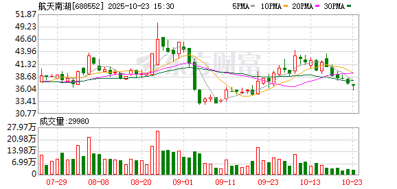 证券时报·数据宝统计,截至发稿,航天南湖收盘价为36.70元,下跌1.05%,本期筹码集中以来股价累计下跌11.93%。具体到各交易日,2次上涨,7次下跌。