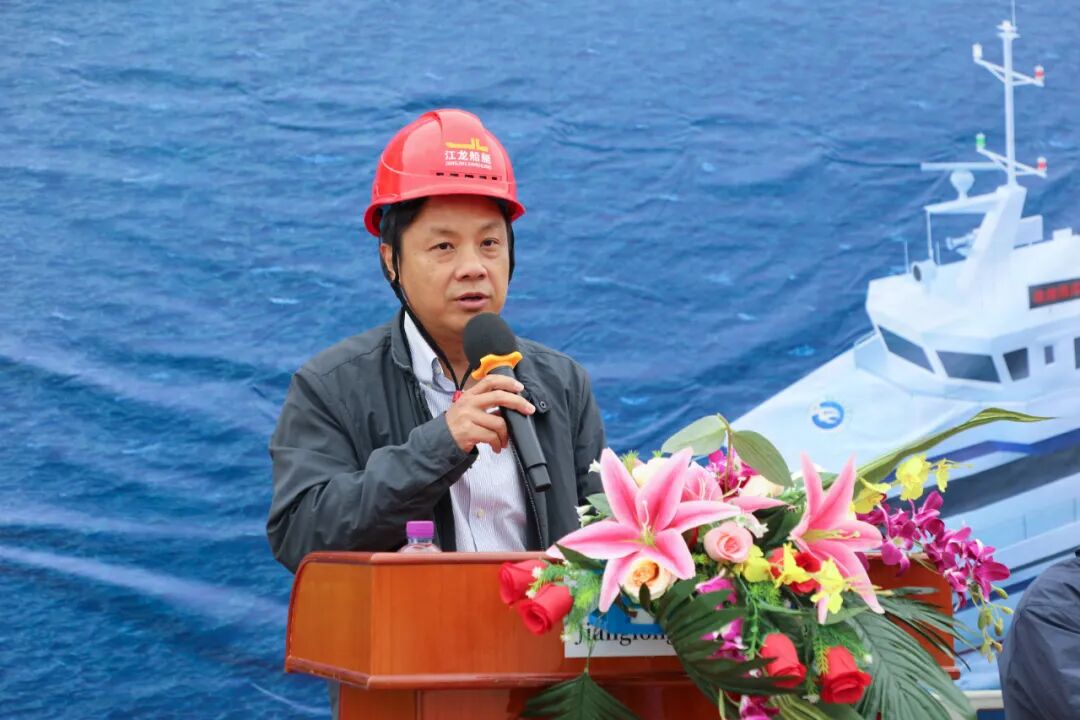 珠海市海洋发展局党组成员、副局长梁宪明,珠海市海洋综合执法支队支队长陈伟达,珠海格力建设投资有限责任公司董事长王忠明,江龙船艇董事兼董事会秘书席方远等出席下水仪式。