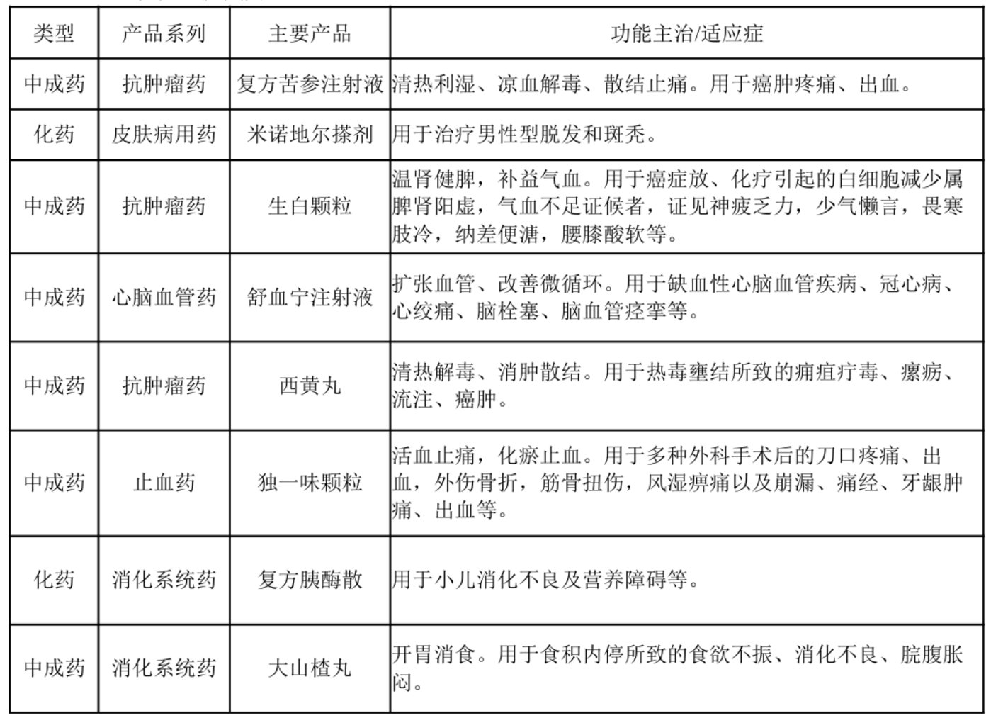 其中,报告期及去年同期销售额占公司主营业务收入10%以上的药品有两款,复方苦参注射液和达霏欣米诺地尔搽剂。