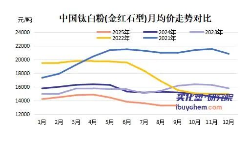 近年来,钛白粉行业陷入量价齐跌的困境,金红石型钛白粉价格从2021年的21500元/吨跌至目前的13000元/吨。虽然2025年钛白粉行业经过5轮调价,但价格依然处于近五年低位。买化塑研究院数据显示,2025年三季度国内金红石型钛白粉均价14111元/吨,较2024年前三季度均价同比降10.49%,而我国钛白粉产能达到600万吨以上,近五年平均增速9.57%。
