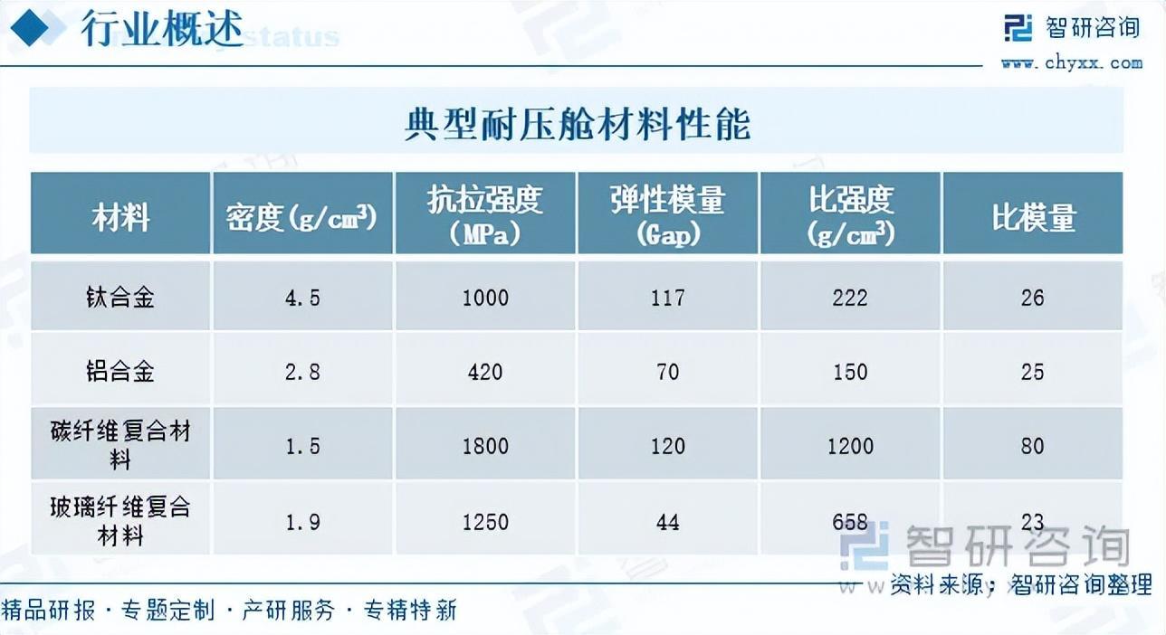 典型耐压舱材料性能