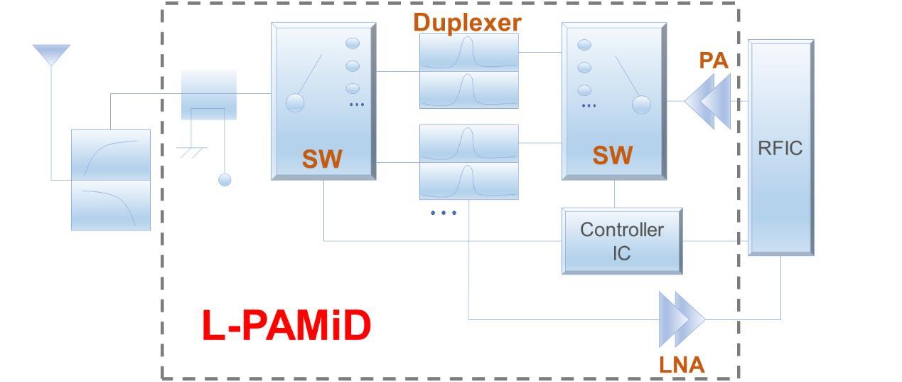 L-PAMiD是射频前端集成度最高、技术难度最大的模组产品,被誉为射频前端“皇冠上的明珠”。该系列产品集成了公司6英寸滤波器晶圆生产线自产MAX-SAW滤波器,采用POI衬底,具有高频应用、高性能等特性。