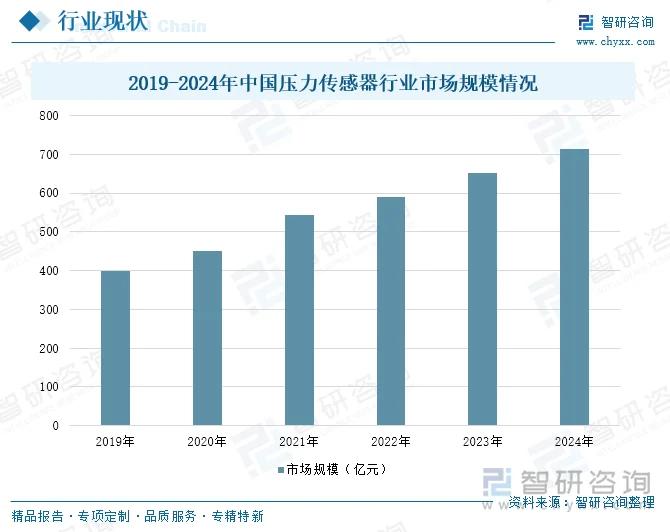 随着工业自动化、智能制造的推进,对于高精度、高性能传感器的需求不断增加。压力传感器作为其中的关键部件,在汽车制造、航空航天、石油化工等多个领域都有着广泛的应用,市场需求的持续释放推动了行业规模的扩大。2024年,中国压力传感器行业市场规模为714.2亿元,同比增长9.79%。在半导体制造中,压力传感器通过精准监测工艺气体压力、控制沉积/蚀刻环境,直接保障芯片良率。例如,热式质量流量控制器(MFC)依赖压力传感器实现±0.5%FS的流量精度,适配sccm级气体调控;压差式流量计则通过层流压差与流量线性关系,适配大流量腐蚀性气体(如Cl₂、NF₃)输送。此外,压力传感器在半导体设备状态监控、安全系统及环境控制中发挥关键作用,如维持洁净室气压稳定、监测气体泄漏等。