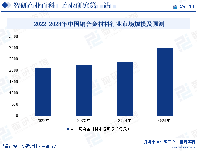 铜合金材料行业作为有色金属工业的重要组成部分,凭借其卓越的导电性、耐腐蚀性及高强度等物理化学特性,在航空航天精密部件制造、汽车轻量化与电动化升级、电子通讯高速传输等战略性领域发挥着不可替代的核心作用。近年来,我国通过产学研深度融合,在高性能铜合金成分设计、微观组织调控及制备工艺等核心技术领域取得突破性进展,自主开发的铜铬锆系、铜镍硅系等高强高导合金材料性能指标已达国际先进水平,产业化应用规模持续扩大,加工装备智能化水平与国际头部企业的差距显著缩小。伴随新能源汽车、5G通信、人工智能等新兴产业的爆发式增长,铜合金材料在高端制造领域的市场需求呈现结构性升级态势。数据显示:2022年,我国铜合金材料行业市场规模约2100亿元;在“双碳”目标和新兴产业发展的双重驱动下,预计到2028年我国铜合金材料行业市场规模或将超过3000亿元,其中新能源领域用铜需求将成为最主要的增长引擎。