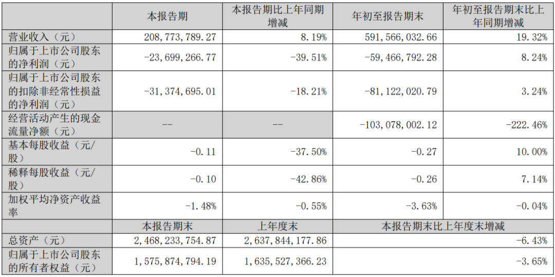 归母净利润亏损5946.68万元,同比收窄8.24%;