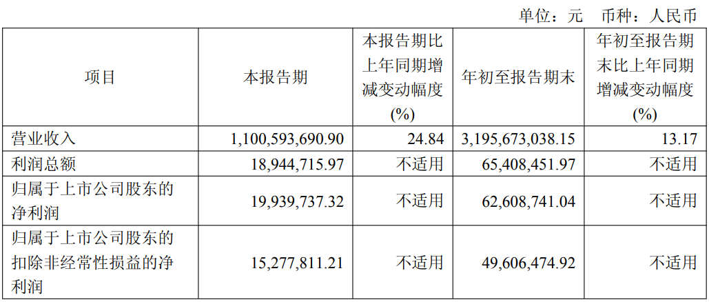 第三季度,华正新材实现营收约为11亿元,同比增长24.84%;归母净利润为1894.47万元;扣非归母净利润为1993.97万元。