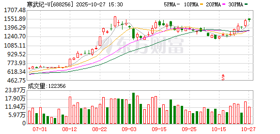 | 688256 | 寒武纪-U | 1530.68 | 0.37 | 2.92 | 电子 |