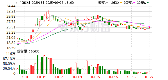 中欣氟材:截至2025年10月20日公司股东人数为70369户
