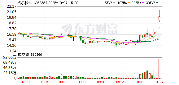 格尔软件(603232)今日上涨3.91%,全天换手率37.20%,成交额17.61亿元,振幅12.47%。龙虎榜数据显示,营业部席位合计净卖出5031.94万元。