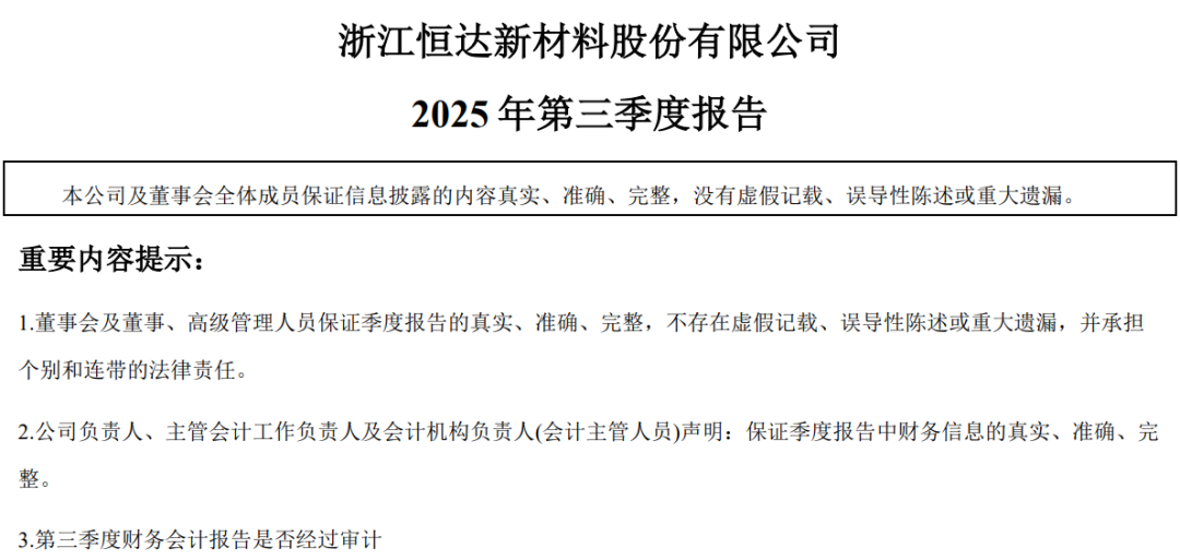 恒达新材在行业温和复苏中跑出了加速度,第三季度净利润同比增长近五成。