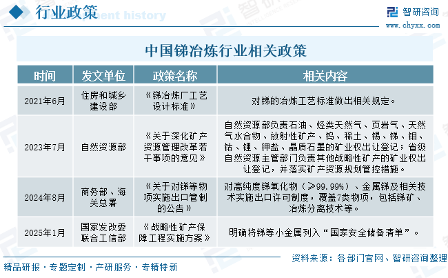 中国锑冶炼行业政策
