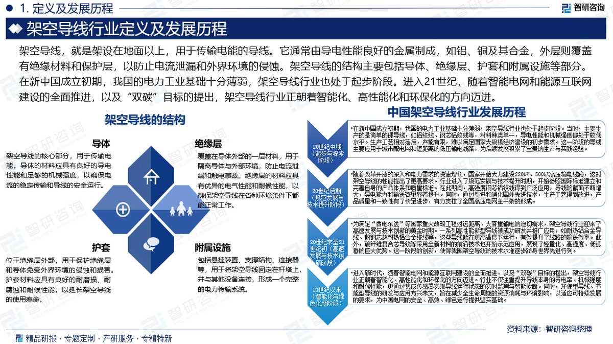 基于此,依托智研咨询旗下架空导线行业研究团队深厚的市场洞察力,并结合多年调研数据与一线实战需求,智研咨询推出《2026-2032年中国架空导线行业市场发展形势及产业趋势研判报告》。本报告立足架空导线新视角,聚焦行业核心议题——变化趋势(怎么变)、用户需求(要什么)、投放选择(投向哪)、运营方法(如何投)及实践案例(看一看),期待携手行业伙伴,共谋行业发展新格局、新机遇,推动架空导线行业发展。深耕中国架空导线领域十余年,智研咨询愿携手行业企业,提供有效信息、专业咨询及定制化解决方案,助力架空导线产业持续发展。
